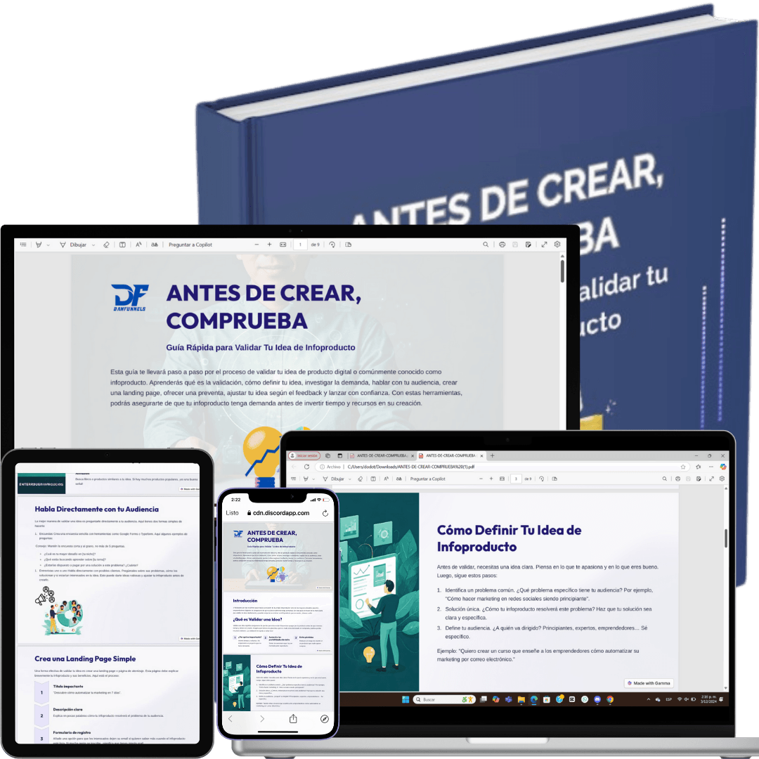Con esta Guía Identifica si tu idea de Producto Digital es rentable, aunque estés comenzando, sin ser experto en tecnologia y sin ser experto en marketing y ventas.